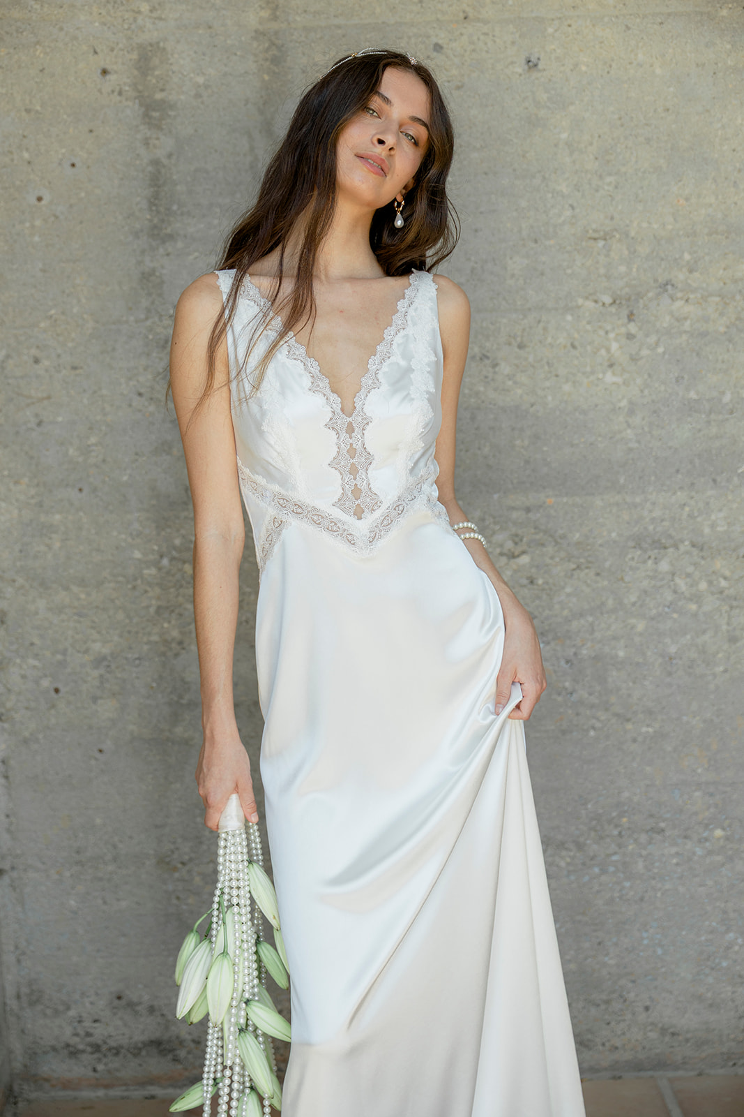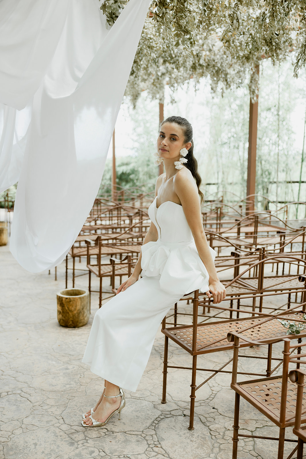 Diseñada para mujeres soñadoras, pero con los pies en la tierra. Mujeres que aman con libertad y eligen con conciencia. Un vestido no las convierte en novias: simplemente las refleja.